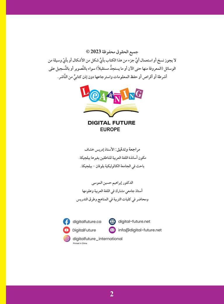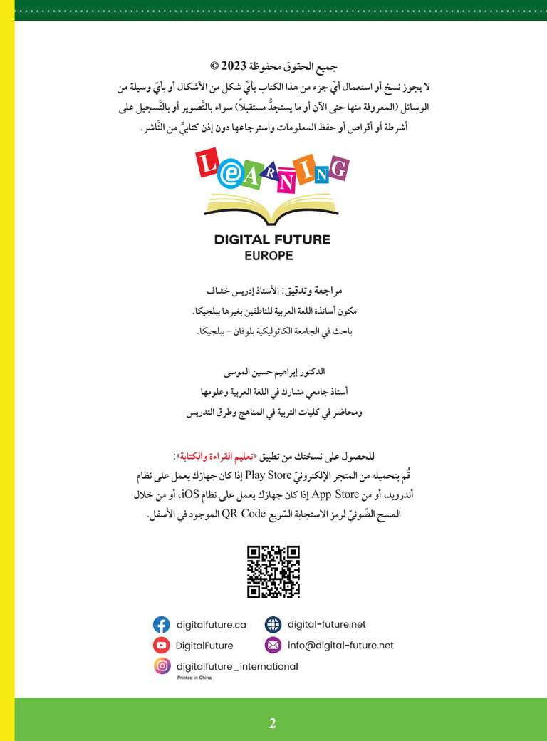 تعليم القراءة والكتابة..  سلسلة المستقبل الرقمي المستوى 4، تتألف من كتابين (قراءة، تمارين)، هي سلسلة تربوية تعليمية متكاملة العناصر، تستند على أسس علمية مطابقة لمواصفات الكتب المدرسية الحديثة، حيث كتبها وأشرف على إعداد موادها نخبة من المختصين في علوم التربية ومناهج تدريس اللغة العربية، وذوي الخبرة في هذا الحقل، وهي مدعمة بخاصية العمل بالقلم التعليمي الناطق وتطبيق يعمل على كافة الأجهزة الكفية، بحيث يمكن المتعلمين من تدعيم تعلمهم للقراءة والكتابة على أكمل وجه.. مميزات هذه السلسلة: مناهج حديثة في التعليم، وميسرة تراعي ميول المتعلم النفسية والذهنية والثقافية الخاصة به. استخدام تقنية القلم الناطق لتيسير التعلم بحيث يتم دمج الصوت بالنص مباشرة مما يسهل على أطفالنا عملية التعلم الذاتي. تطبيق مجاني يعمل على الأجهزة الكفية. محتوى تعليمي مميز يساعد المتعلم على الإلمام باللغة العربية والتمرس بحل كافة صعوباتها. رسوم جذابة وإخراج أنيق يتلاءم مع طبيعة المادة. تمارين وتدريبات متعددة تطور مهارات المتعلم اللغوية وتعززها. تقريب المعرفة من المتعلم وترسيخها وتمكينه من استخراج العبر وإدراك القيم الإنسانية في حياته اليومية. دفتر تمارين مرفق مع كل مستوى بحيث يغطي مرحلة تعليمية كاملة. ألعاب تربوية هادفة تجمع بين متعة التعلم والترفيه في آن معاً.   كلمات البحث: سلسله - مستقبل - الرقمى - مستوى - الرابع - رابع