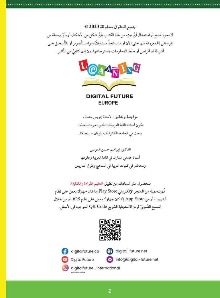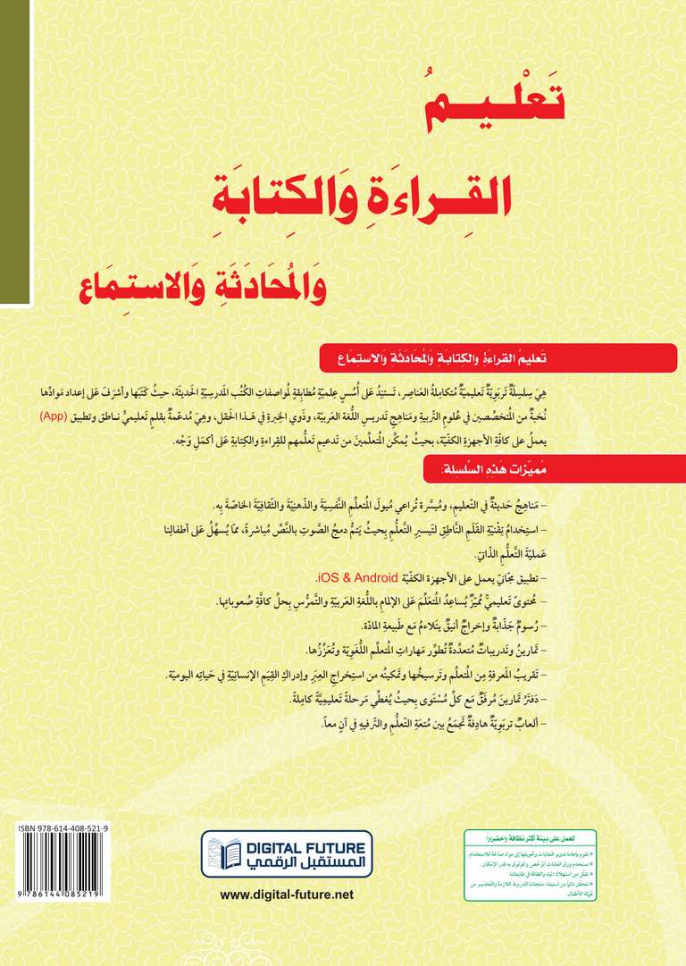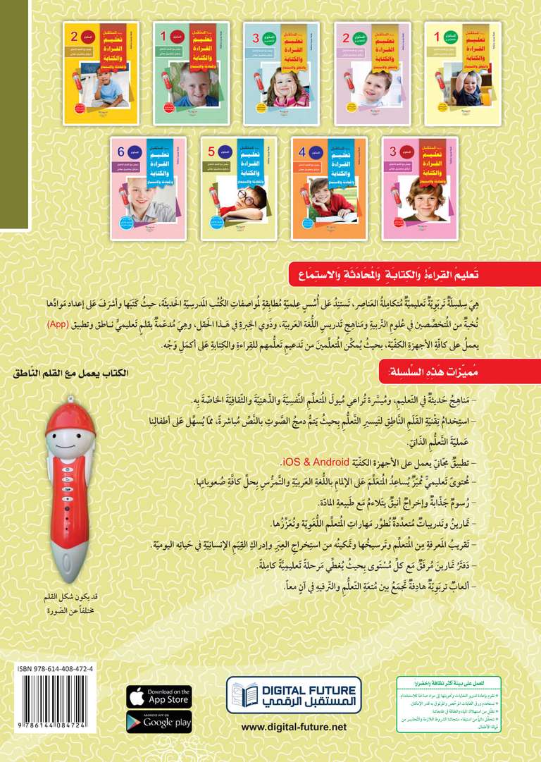 تعليم القراءة والكتابة.. سلسلة المستقبل الرقمي المستوى 5، تتألف من كتابين (قراءة، تمارين)، هي سلسلة تربوية تعليمية متكاملة العناصر، تستند على أسس علمية مطابقة لمواصفات الكتب المدرسية الحديثة، حيث كتبها وأشرف على إعداد موادها نخبة من المختصين في علوم التربية ومناهج تدريس اللغة العربية، وذوي الخبرة في هذا الحقل، وهي مدعمة بخاصية العمل بالقلم التعليمي الناطق وتطبيق يعمل على كافة الأجهزة الكفية، بحيث يمكن المتعلمين من تدعيم تعلمهم للقراءة والكتابة على أكمل وجه..